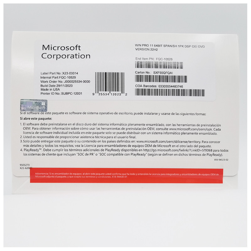 Model Number: | Win 11 Pro Oem |