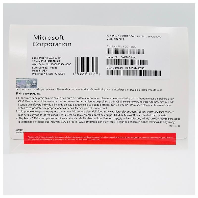 İspanyolca dil desteği ile Windows 11 Pro OEM, İspanyolca konuşan kullanıcılar, İspanyol pazarlarında faaliyet gösteren işletmeler veya İspanyol müşterileri için bilgisayar oluşturan sistem geliştiricileri için ideal bir seçimdir.Bu sürüm, perakende sürümlerinden daha uygun bir fiyata tamamen yerelleştirilmiş bir İspanyolca deneyimi ile Windows 11'in tüm profesyonel özelliklerini sunar.