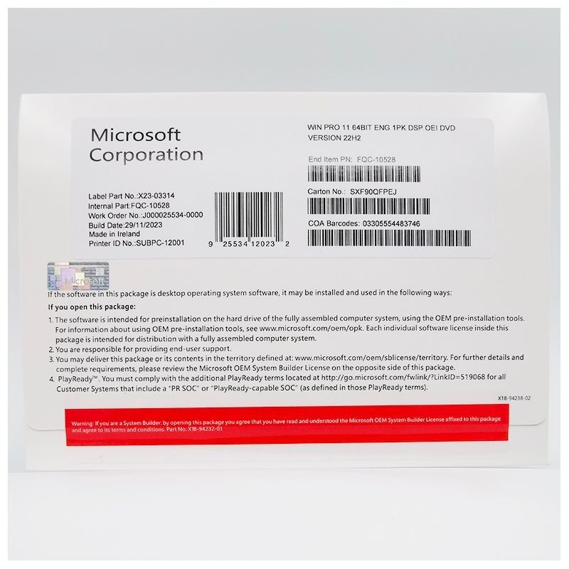 Orijinal Win 11 Pro OEM 64 Bit DVD,İngilizce,Korece,Rusça,Fransızca,Almanca,İtalyanca Dil Sürümü